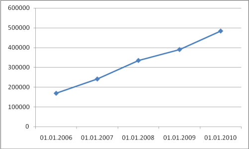 Тенденції останніх років на світовому ринку реєстрації доменів свідчать про те, що користувачі мережі при виборі доменних імен все частіше віддають перевагу національним доменам. Не став винятком і домен .UA, приріст реєстрацій у якому за підсумками 2010 року становив 23,93%. Дані про динаміку реєстрацій доменних імен за 2007-2009 роки. відображено на діаграмі 1.